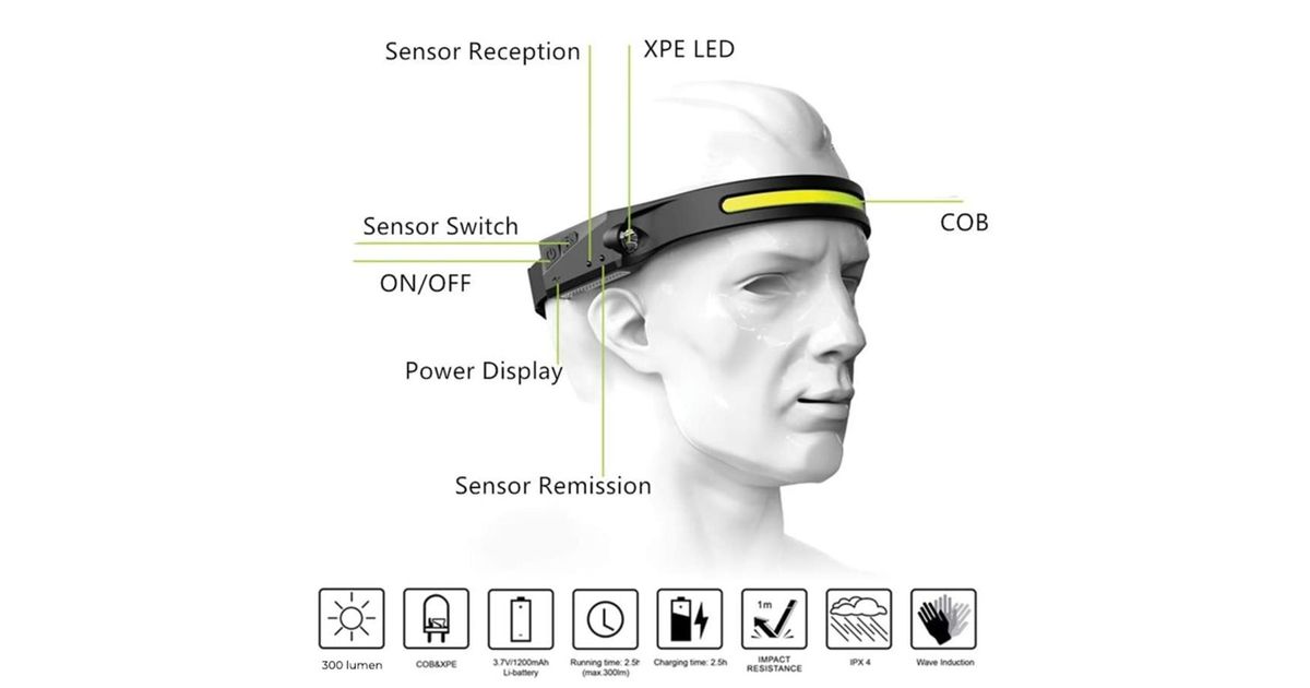 Denver SSH-50 LED-Stirnlampe mit Akku und Sensor