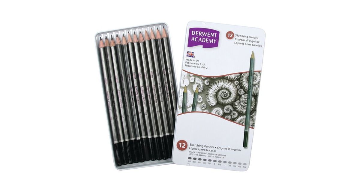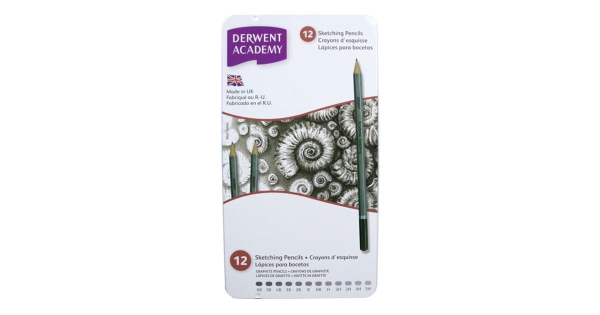 Sketching is the foundation of all art with a wide variety of styles and subjects from which to choose. Soft pencils (B - 6B) are best suited to sketching and blending. Harder pencils (HB - 5H) are ideal for straight line and detailed work. Derwent Academy Sketching offers you a comprehensive range of 12 degrees from a soft 6B to a hard 5H perfect to tackle all styles of drawing.