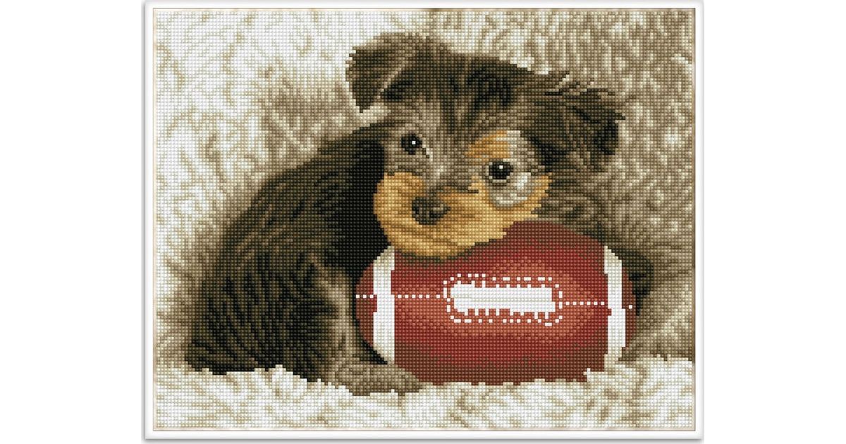 DIAMOND DOTZ Diamond Embroidery Diamond Dotz Diamond Mosaic Footy Pup Puppy with Rugby Ball 49x40cm DQ8017