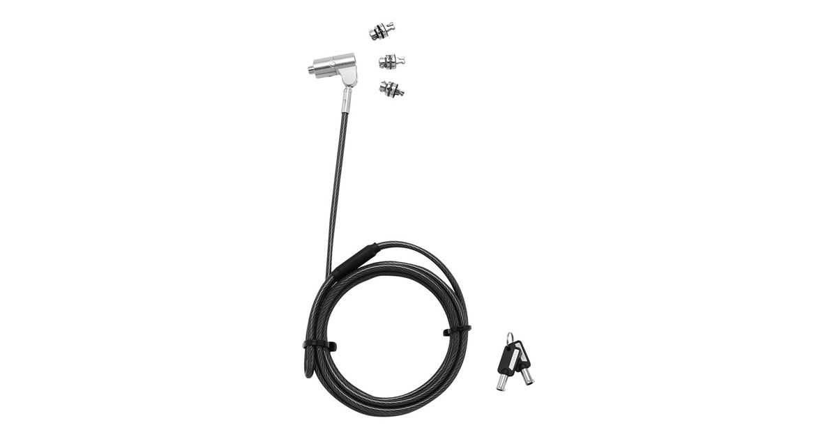 Currently device manufacturers use three different lock slot formats. Thanks to the Security Lock with Exchangeable T/N/W Head your lock will suit all kinds of devices equipped with an anti-theft port. Notebooks as well as projectors, monitors and printers can be effectively secured with the DICOTA locking system. The T-Lock head is for 3 x 7 mm slots, the W for 3.2 x 4.5 mm slots, and the N for 2.5 x 6 mm slots. Long-lasting. Thanks to the easy-exchange heads, you will be able to change your devices in the future and still use the security lock. Enjoy high flexibility in workplace design thanks to the 360° rotatable cylinder. Thanks to the push-to-lock function, the lock can be secured without a key using one hand. It's quick, simple and reliable. The sheathed multi-strand steel cable is 2 m long and extra strong with a diameter of 4.4 mm. The functional Velcro strap allows the cable to be rolled up for compact storage and transportation. Two keys are included as standard. This lock is a standalone version and cannot be integrated into a larger locking system.