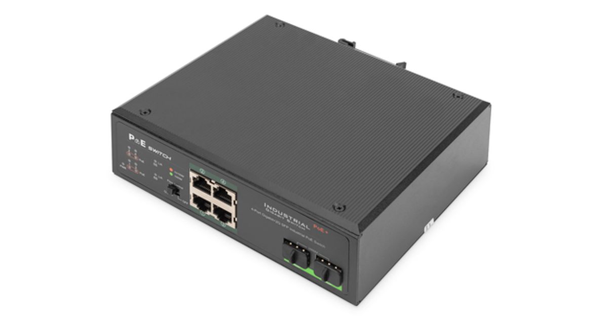 Digitus Industrial 4 Port Gigabit PoE Switch, Unmanaged, 2 Uplinks, Unmanaged, Gigabit Ethernet (10/100/1000), Power over Ethernet (PoE)
