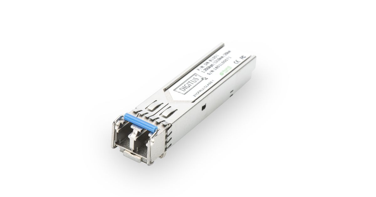 The DIGITUS® mini GBIC (SFP) transceiver modules offer highest quality and reliability. Wether from switch to switch, converter to switch, converter to converter or any else application: The wide product range of DIGITUS® modules makes possible a flexible usage of the fiber technology. The conformity to the MSA (Multi Source Agreement) standard ensures a compatibility to third party manufacturers.