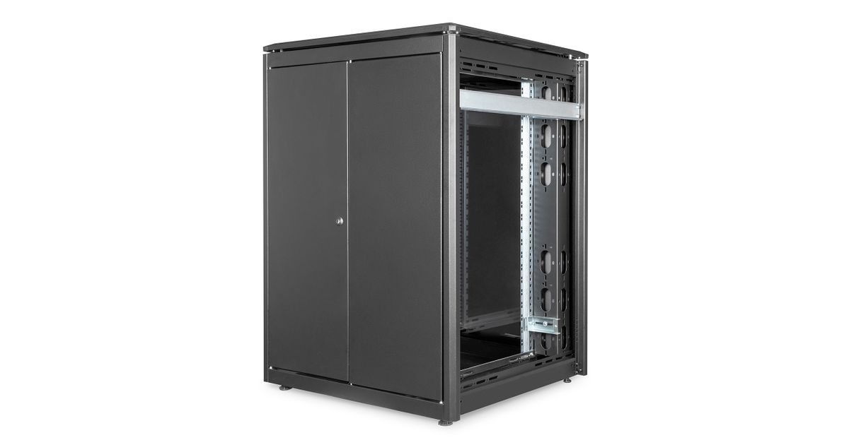 The Network Racks of the Unique Series were designed for the user friendly installation of active- and passive network components accompanied by a neat cable management. Each rack consists of up to 1.5 mm strong steel sheet material which ensures a very good stability as a robust steel construction due to special plate curving technique. The color is created by powder coating in grey (RAL 7035) and black (RAL 9005). For certain conditions, where the set-up location is difficult to reach, the rack can be disassembled. Doors can be easily detached and the door stop can be changed from right to left. The roof is present with an added lid which contains air ventilation slots for a better air circulation. Furthermore the roof is ready for the mounting of an air ventilation unit. Each network rack contains 2 pairs (4 pieces) of 483 mm (19”) profile rails inside which are galvanized and with height unit marking (countable from both directions). They are variable in depth and connected with additional depth support bars to realize extensive 483 mm (19”) equipment installations. An important aspect for each installation is the cable management. The base of each rack is equipped with a sliding cable entry panel with rubber sealing. Racks from 26U are equipped with two cable entries with brush strips on the rear side above- and underneath the door. For cabinets with 800 mm width, the possibilities of cable management get enhanced with additional cable entries with brushes left and right in the top and base chassis. Furthermore there are mounted vertical cable ducts with shutter left and right to the 483 mm (19”) profile rails in the front (on cabinets from 32U and 800 mm width). An extensive portfolio of accessories for cable management, shelves, etc. will help to meet many requirements in daily use.