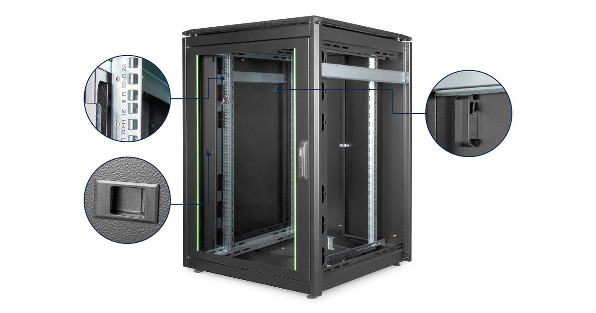 Digitus ® Network Cabinet Unique Series - 800x800 mm (WxD), Freestanding rack, 22U, 800 kg, 800 g, Black