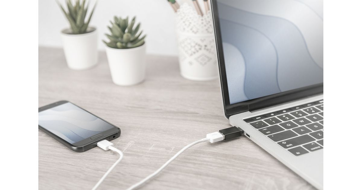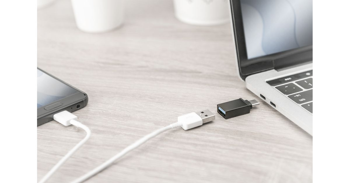 Compact adapter for connection of devices with USB Type-C™ interface (e. g. Smart Phone, Notebook or Tablet) to the power adapter, PC or Hub by usage of an USB 2.0/3.0 A to A connection cable. Datatransferrate up to 5 Gbps (Super Speed).