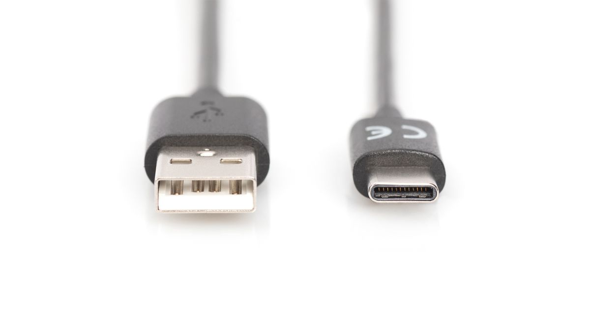 Digitus USB Type-C™ connection cable, Type-C™ to A, 1.8 m, USB C, USB A, USB 2.0, 480 Mbit/s, Black