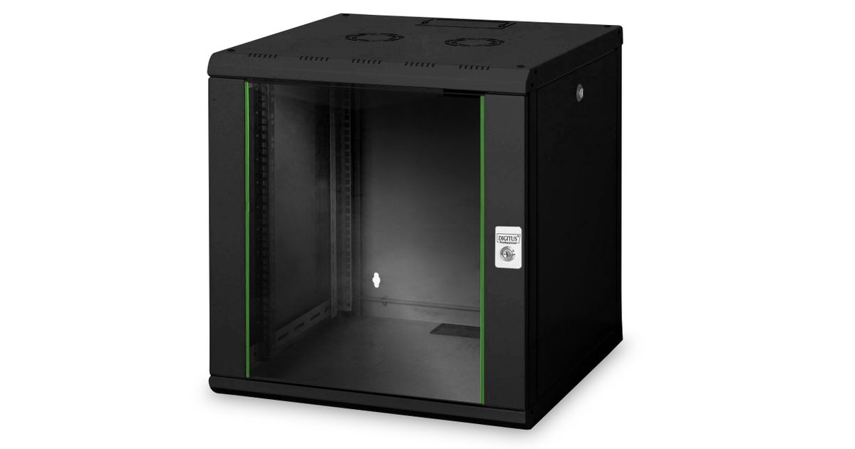 Digitus Wall Mounting Cabinet Unique Series - 600x600 mm (WxD), Wall mounted rack, 12U, 100 kg, Key lock, Rack rails, Black