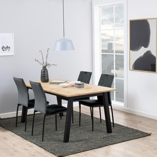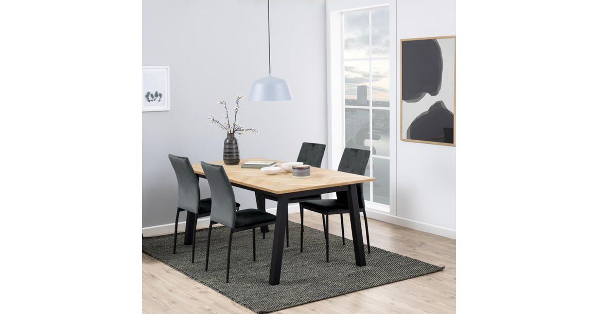 Dining chair DEMINA 53x43,5xH92cm, fabric: dark grey 40. Sitting height: 48.5cm, fabric: Dublin fabric dark grey 40, base: metal powder coated, black, box/4 pcs. Weight limit: 100kg.