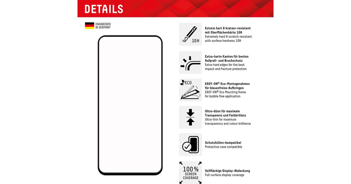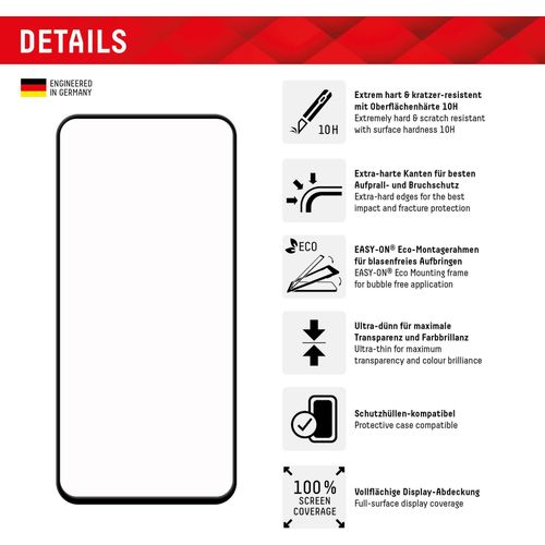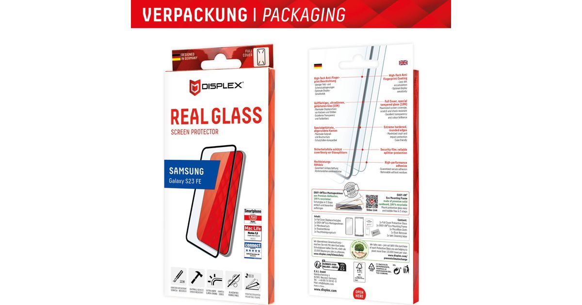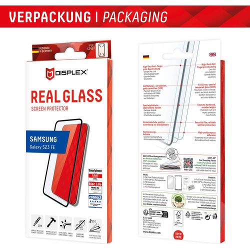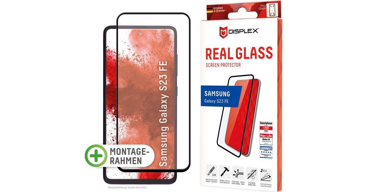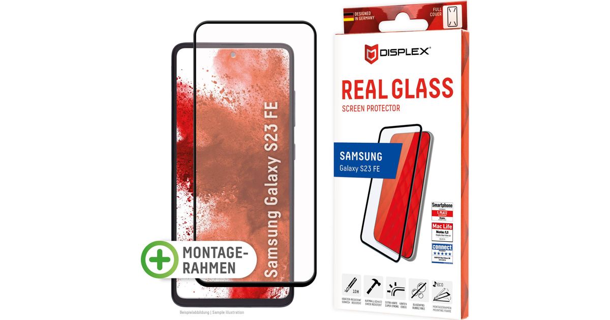 Displex Panzerglas (10H) für Samsung Galaxy S23 FE - Eco-Montagerahmen - Full Cover - Samsung - Galaxy S23 FE - Trockene Anwendung - Staubresistent - Schlagfest - Kratzresistent -