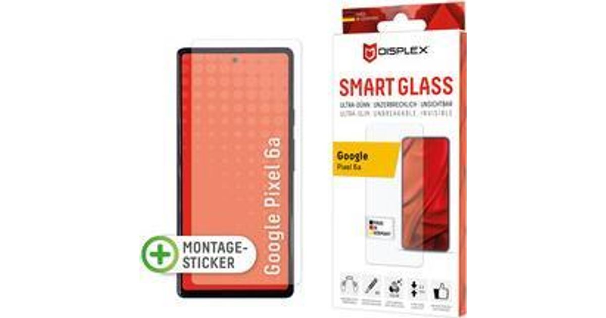 Displex Smart Glass (9H) for Pixel 6a, Mounting Sticker, unbreakable, ultra-slim, invisible, Google, Pixel 6a, Dry application, Impact resistant, Scratch resistant, Dust resistant, Transparent, 1 pc(s)