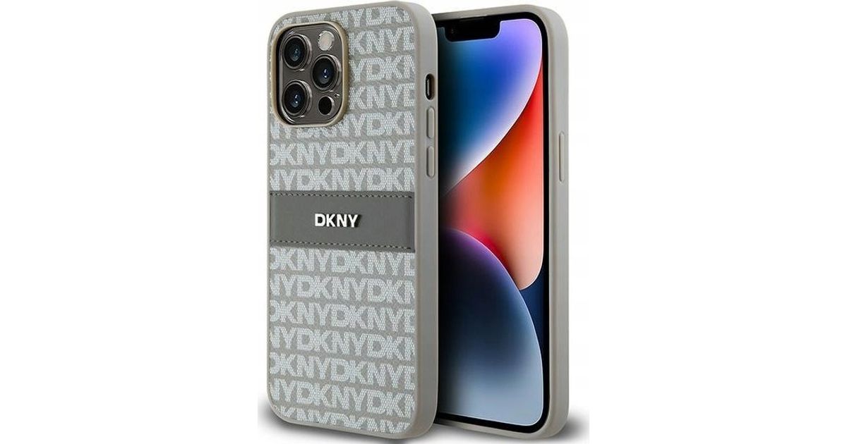 DKNY DKNY DKHCP14LPRTHSLE iPhone 14 Pro 6.1" beige/beige hardcase Leather Mono Stripe & Metal Logo