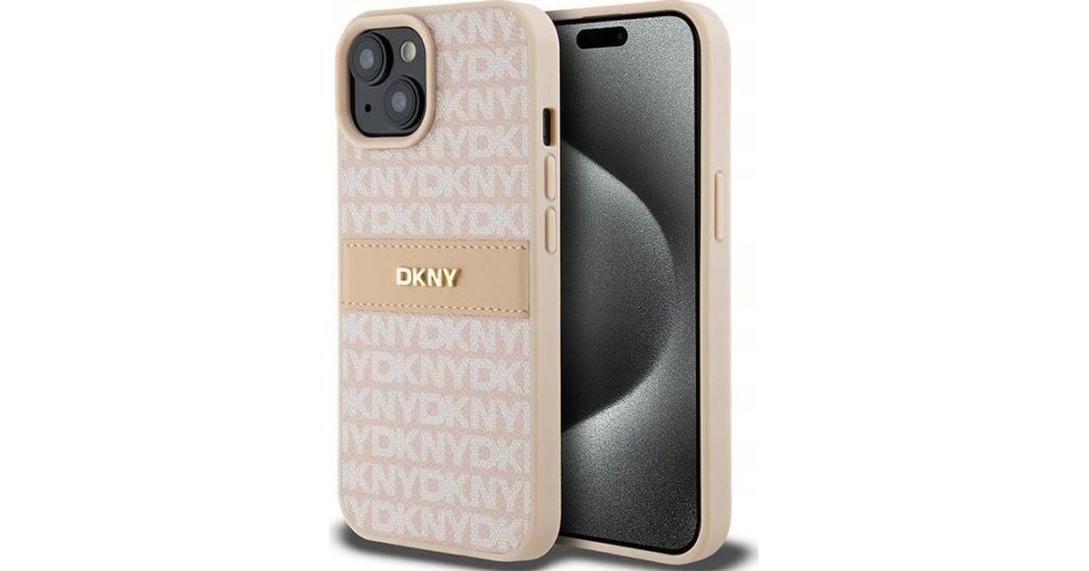 DKNY DKNY DKHCP15MPRTHSLP iPhone 15 Plus / 14 Plus 6.7" pink/pink hardcase Leather Mono Stripe & Metal Logo