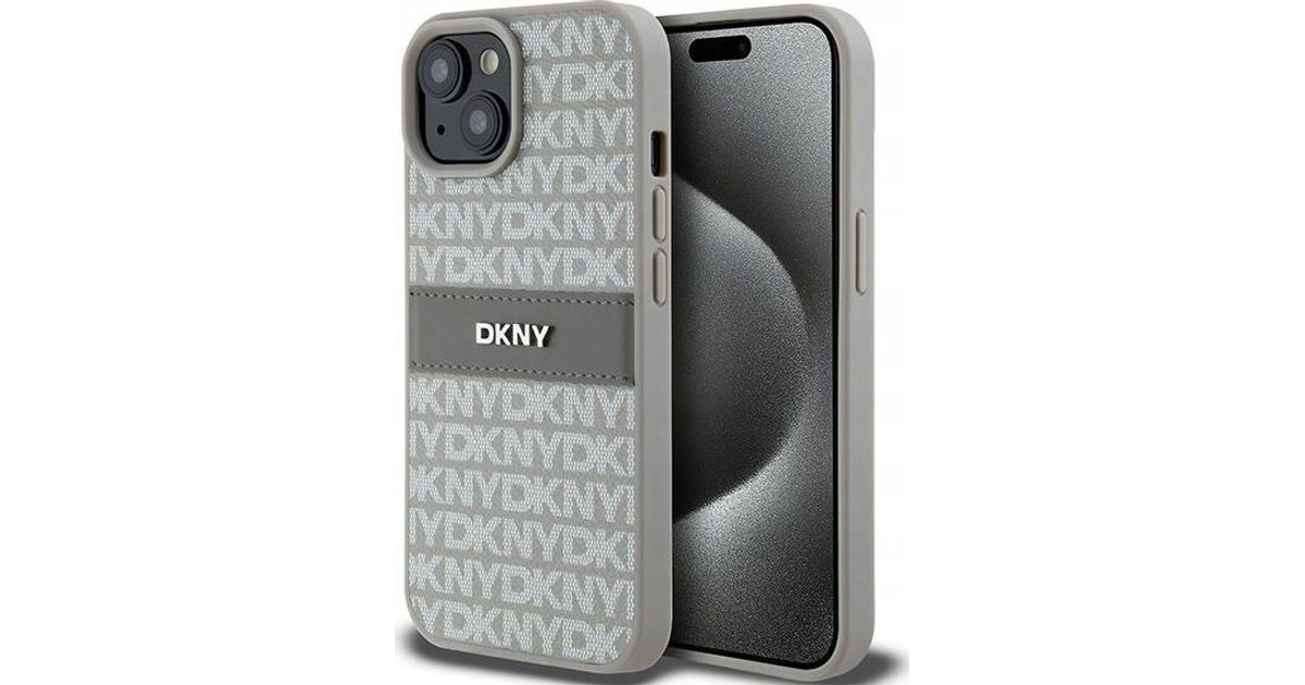DKNY DKNY DKHCP15SPRTHSLE iPhone 15 / 14 / 13 6.1" beige/beige hardcase Leather Mono Stripe & Metal Logo