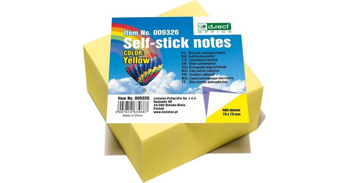 D.Rect Adhesive Notes 76x76mm Yellow (340112)