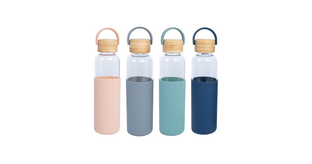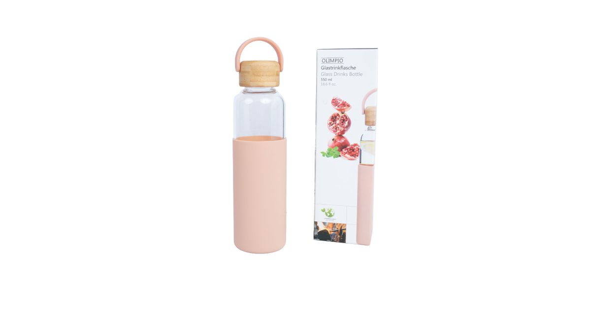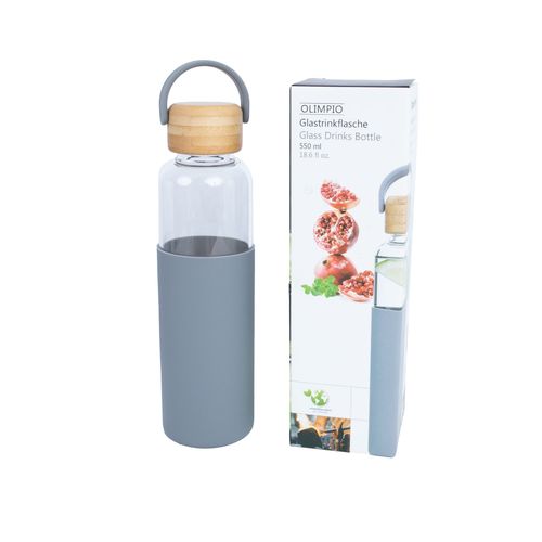 Drinking bottle GLASS H22,5cm 550ml, glass, bamboo cap