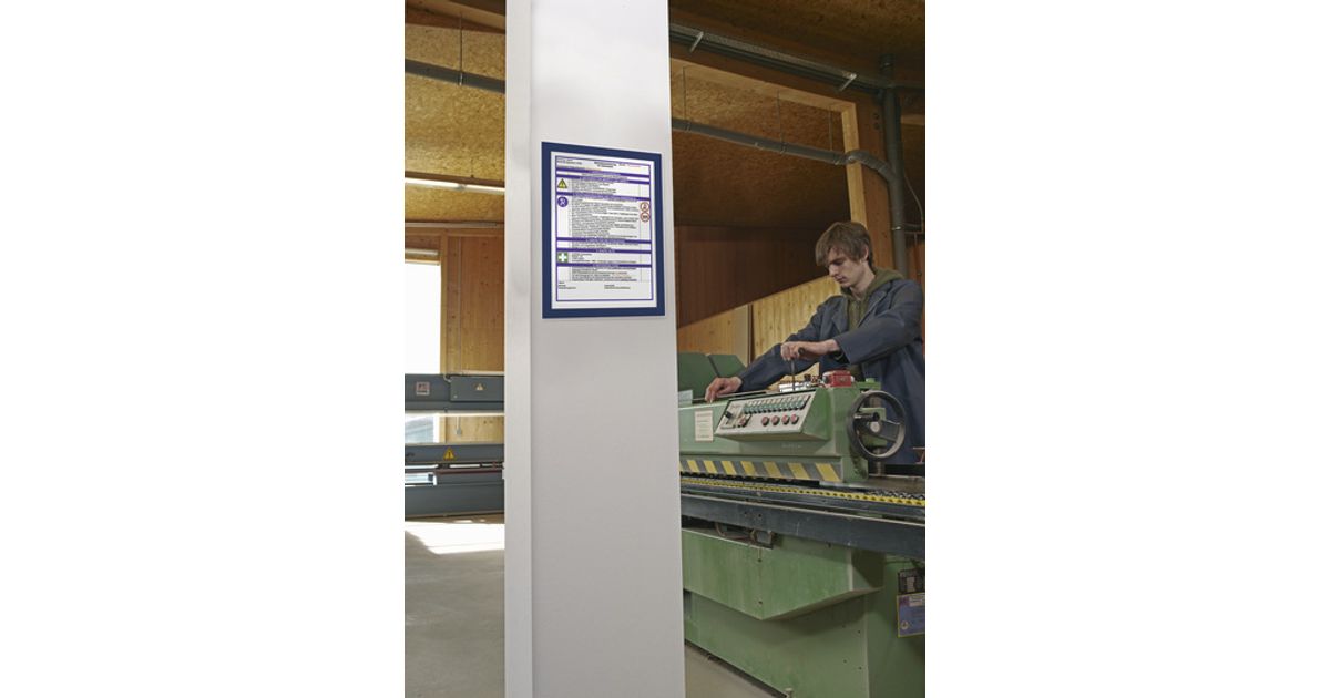 Self-adhesive A4 information sign with folding magnetic front panel. DURAFRAME® is the professional and convenient way to display literature. Simply peel off the protective paper and apply the self adhesive back to any smooth, solid surface such as windows, filing cabinets and doors. DURAFRAME® can easily be repositioned from surfaces such as glass without leaving a residue.
