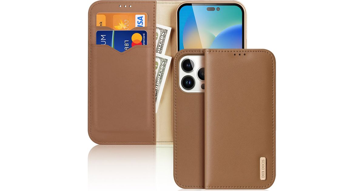 Dux Ducis Dux Ducis Hivo Leather Flip Case Genuine Leather Cover Wallet for Cards and IDs iPhone 14 Pro Brown