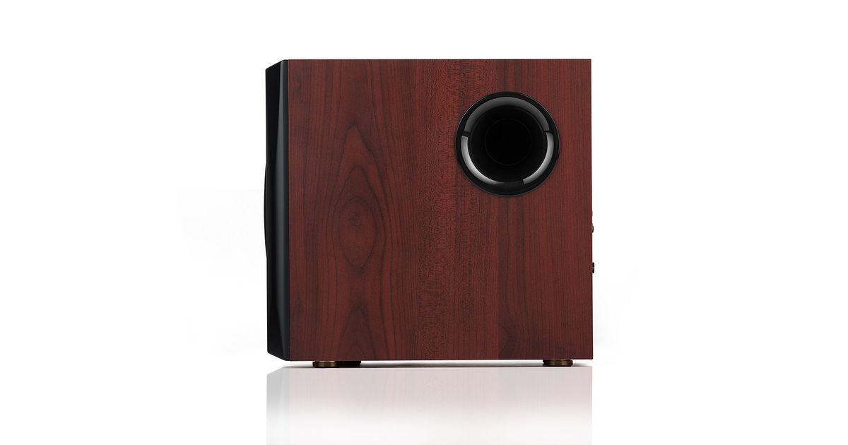 This subwoofer has an enhanced side panel bass reflex port. This reflex port enhances your listening experience for all types of bass sounds. Enjoy deep rumbling lows from your favourite movies, music, games and so much more with this 2.1 system.