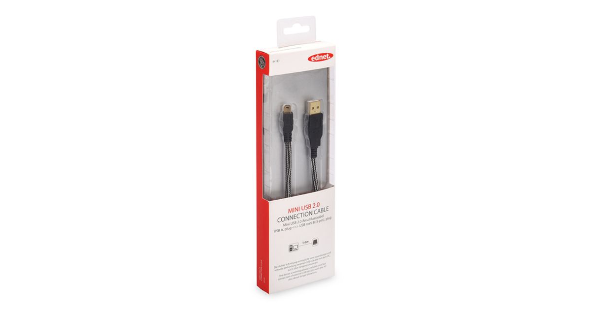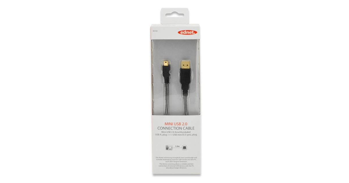 Ednet 84183 USB cable 1 m USB 2.0 USB A Mini-USB B Black
