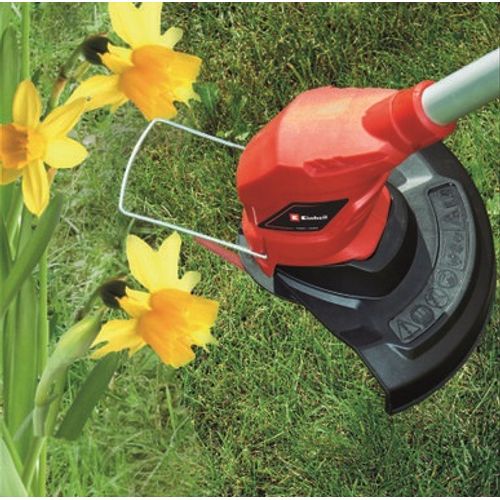 The Einhell GC-CT 18/24 Li cordless grass trimmer makes brisk work of tidying up the garden and lawns with corners and edges. It gets your garden trimmed quickly and comfortably, with complete flexibility. The cordless grass trimmer is a high-performance member of the Power X-Change series. The rechargeable batteries from the system family can be used in every tool from the system series from the garden and workshop range. The grass trimmer is equipped with the Flower Guard from Einhell. This provides effective protection against damage for flowers and ornamental plants. The infinitely adjustable, telescopic long handle is adjustable to the exact requirements of the home gardener and therefore contributes to tireless working. With a blade speed of 8500 rpm, the cordless grass trimmer is a powerful, well-equipped helper for keeping vegetation on lawns, grounds and hard-to-reach areas in the garden in trim. The blade have a cutting width of 24 centimeters. The product is supplied complete with 20 plastic blades, 2,0Ah battery and a system charger.