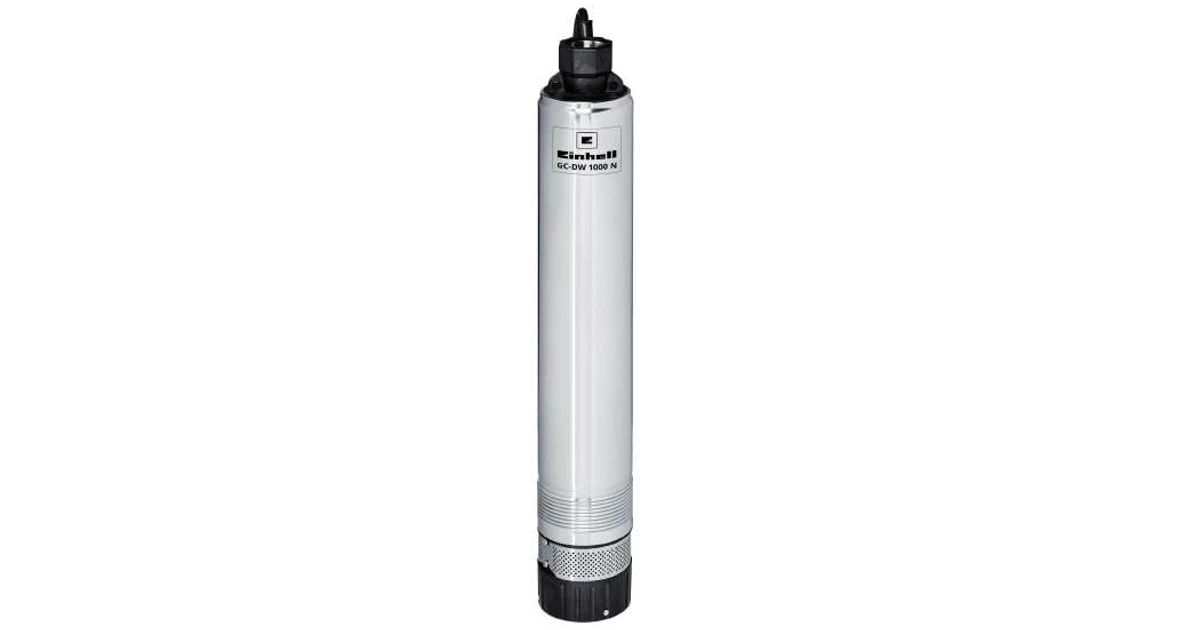 The Einhell GC-DW 1000 N deep well pump is a rugged basic pump for extraction of clean water for gardens or service water in the home and is also suitable for setting up lawn sprinkler systems and systems for watering the garden. The slimline deep well pump is ideal for wells, reservoirs and cisterns. Using the supplied rope the pump from Einhell can be lowered to depths up to 19 meters, and has two suspension eyelets for fastening it firmly and securely. With its robust 1000 W motor the submersible pump delivers up to 6,500 liters of water per hour. A multi-stage impeller delivers pressure at a constant level. An integrated non-return valve prevents return flow when the pump is switched off. For a long service life it is made of high quality materials with individual components made of rust-proof high-grade steel: The pump housing is made of rust-proof high-grade steel and the robust pressure connection is fitted with a high-grade steel insert. The dirt screen is also made of high-grade steel. The high-quality mechanical seal ensures a long service life. An integral overload switch protects the equipment from overloads and shuts the equipment down in such a case. The hose connection is integrated on the top of the pump for easy access.