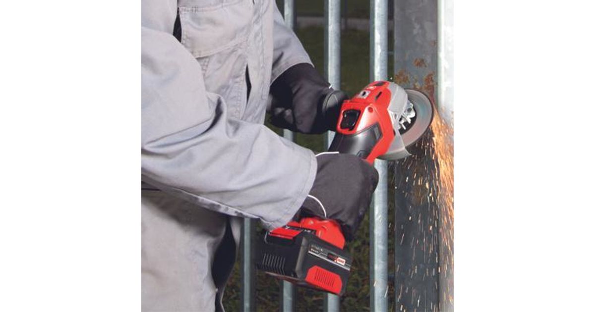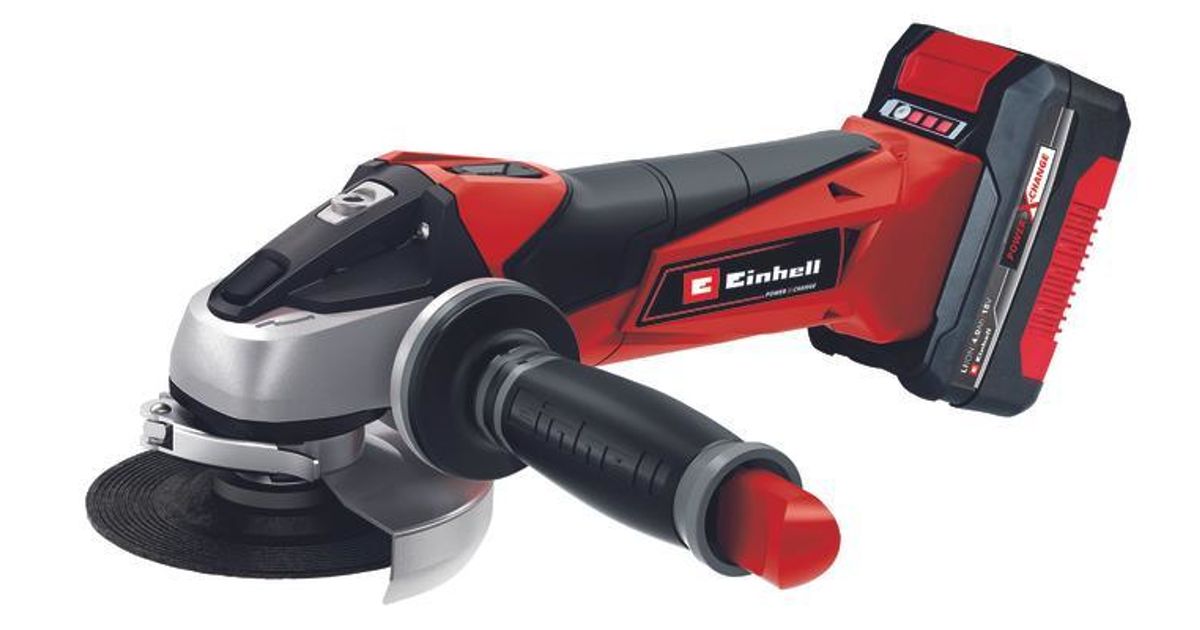 The Einhell TE-AG 18/115 Li cordless angle grinder (1x4.0AH) is immediately ready to take on your grinding, sanding, cutting or polishing jobs. With a combination of power and skill it lets you master materials made of metal and stone. A rechargeable battery from Einhell’s popular Power X-Change family, which can be used in all tools and appliances from the PXC system series, is included in delivery. This angle grinder is the lightest in its class. Softstart and restart safeguard functions add up to more safety for the user. The wheel guard has a quick-adjust facility. While the overload cut-out contributes to a longer service life, the modified air guidance results in better cooling. The aluminium gear housing was designed with robustness in mind. Nevertheless this cordless grinder (with a wheel diameter of 115 mm and max. cutting depth of 28mm) is remarkably smooth in operation thanks to separation of the motor and gearing. For flexibility the additional handle can be fitted in three positions, making it easier to work in areas with difficult access. With its slim design and ergonomic Softgrip, this angle grinder is comfortable to work with. The charge level can be viewed at any time on the battery capacity indicator. For optimum results it is recommended to use a 2.5 Ah battery or higher. This product comes with one 4.0 Ah rechargeable battery, a PXC system charger, one cutting disc and one fin grinding disc.