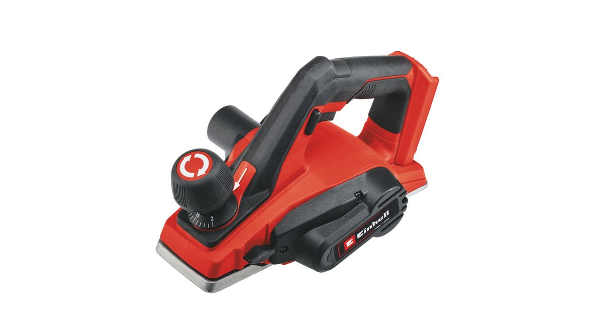 The cordless planer Einhell TE-PL 18/82 Li - Solo is a high-performance hand-held planer for DIY and ambitious wood handicraft enthusiasts performing jobs with a chip depth of up to 2 mm by hand. Large knife shafts deliver optimum planing results and the solid aluminium soleplate ensures flat results. The soleplate also has a V-shaped groove for easy chamfering of edges. There is an automatic park rest to protect the planer and the workpiece. The ergonomic handle ensures a firm and secure hold and tireless operation. For comfortable handling, the cordless planer has a soft grip. The product is supplied with a parallel guide for straight and precise planing results, plus a rebate depth stop for making recesses with ease. Also included is a TCT planing knife (reversible blade) for achieving an excellent surface quality. As a member of the high-quality Power-X-Change family, all the rechargeable batteries from the system series can be used in the planer. For optimum results it is recommended that 2.5 Ah rechargeable batteries or higher are used. The product is supplied without a battery and charger which are available separately.