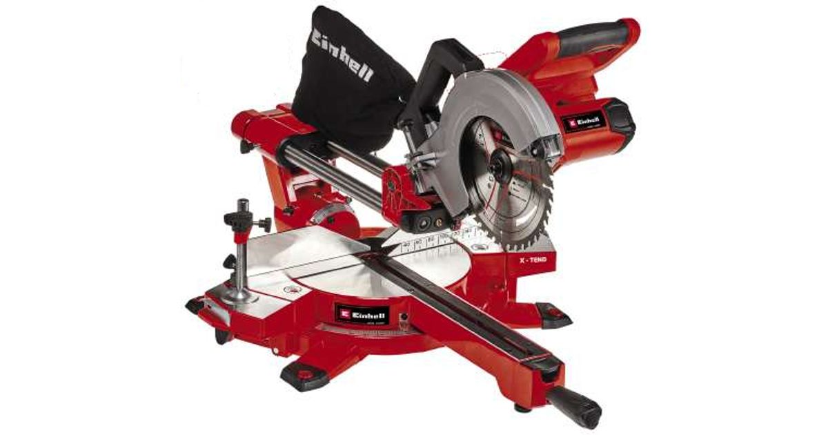 The Einhell TE-SM 36/210 Li – Solo drag, crosscut and miter saw can be used with flexibility for all woodworking jobs, for cutting miter cuts and for cross-cutting and even cutting parquet to length. The cordless version of the saw provides an unlimited radius of operation: No interfering cables while working, no rewinding when the job is done. As a member of the Power X-Change series, all the rechargeable batteries from the high-performance lithium-ion series can be combined with the drag, crosscut and miter saw. For optimum results it is recommended that a 2.6 Ah Plus rechargeable battery from the PXC series be used as a minimum. This is available separately. The Einhell drag, crosscut and miter saw is equipped with a smooth draw function which is suitable for wider workpieces. The X-Tend workpiece supports can be adjusted with one hand and without the need for any tools. The clamping device is for holding the workpiece securely in position. The turntable has a precise angle adjustment facility for angular cuts. In addition, the saw head can be tilted up to 45° to the left for miter cuts. The high-performance saw has a high-quality carbide-tipped precision saw blade developed specially for cordless saws and delivers a fine cut. A cutting line laser and an LED light ensures that cuts can be made quickly, accurately and above all safely. The cordless drag, crosscut and miter saw also has a sawdust bag or an adapter for an extractor, for keeping both the workplace and the air clean.