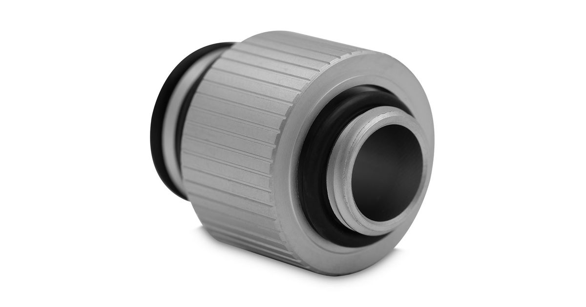 EK-Quantum Torque Push-In adapter M 14 - Satin Titanium is EK's new push-in fitting designed for use exclusively with EK-Quantum Reflection² distribution plates. It has a standard G1/4" male thread with an o-ring at one end, a knurled midsection much like the Quantum Torque Static Extenders, and a male push-in part with two o-rings at the other end that pushes directly into the distro plate without screwing.
