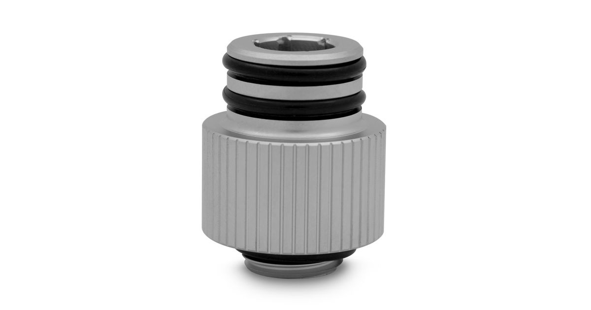 This adapter greatly helps with attaching a radiator to the Reflection² distribution plate, reducing the strain needed to screw in fittings and adding convenience and ease of use. The fitting is made of CNC-machined brass with a satin silver finish.