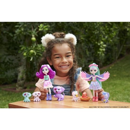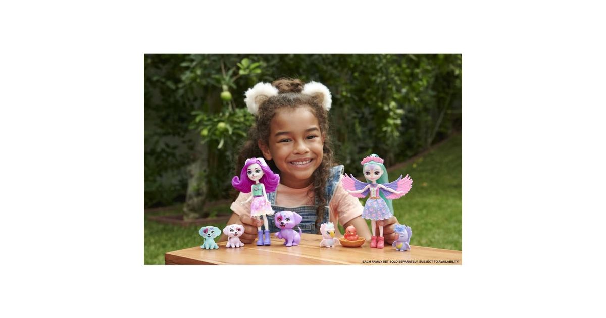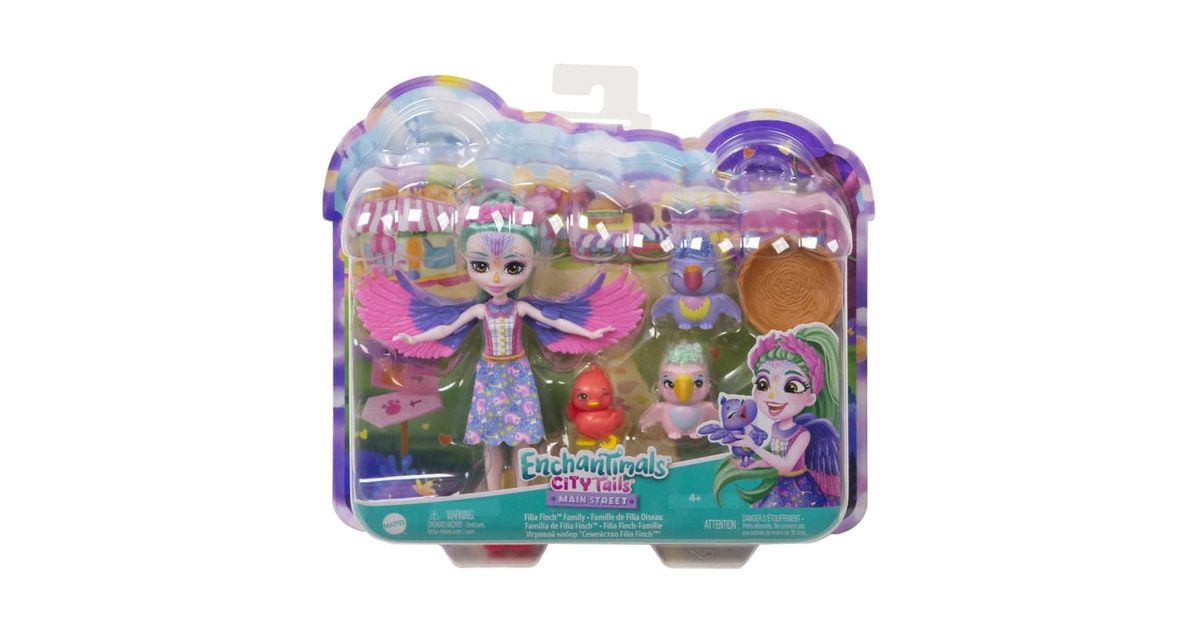 The Enchantimals™ doll collection celebrates the group of lovable friends who always have fun with their animal best friends. From City Tails™ Main Street, Filia Finch™ doll, Tropic™ bestie figure and the brood always flock together, and they look alike, too! Filia Finch™ spreads her wings in a cute top and removable skirt as she and her family take off on adorable adventures! Kids will love playing out the special Enchantimals™ bond these best friends share and will want to collect them all! Colors and decorations may vary.