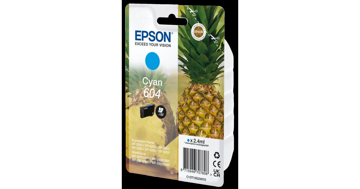 Enjoy reliable, prints with minimal outlay using Epson's four-colour 604 inks. Thanks to the combination of dye colours and pigment black inks, this ink set produces clear and colourful prints.