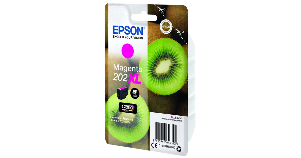 Epson Kiwi Singlepack Magenta 202XL Claria Premium Ink, High (XL) Yield, Pigment-based ink, 8.5 ml, 650 pages, 1 pc(s)