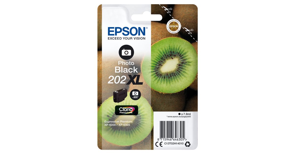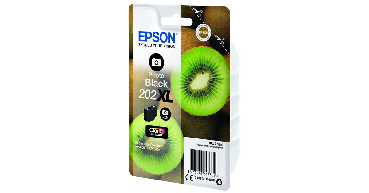 Epson Kiwi Singlepack Photo Black 202XL Claria Premium Ink, High (XL) Yield, Dye-based ink, 7.9 ml, 800 pages, 1 pc(s)