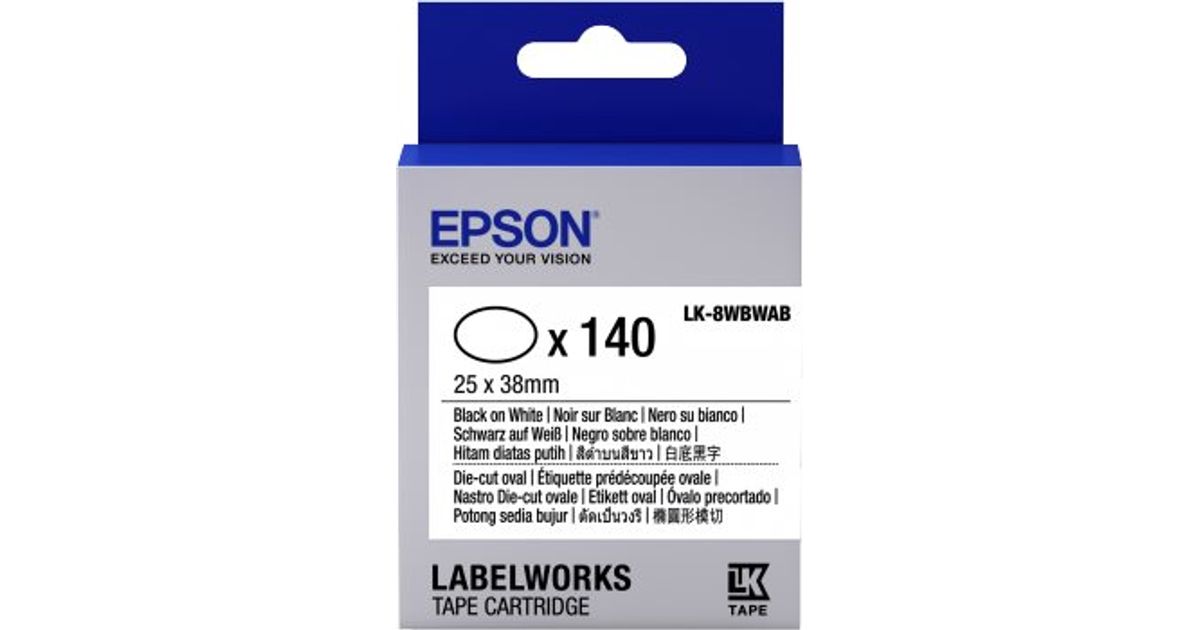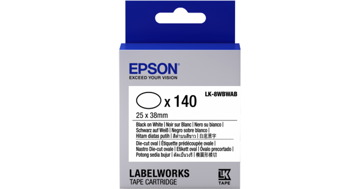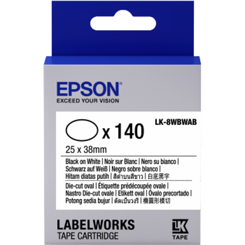 Epson Label Cartridge Die-cut Oval LK-8WBWAB Black/White 25x38mm (140 labels), Black on white, 140 pc(s), Japan, LabelWorks LW-1000P LabelWorks LW-300 LabelWorks LW-400 LabelWorks LW-400VP LabelWorks LW-600P..., 2.5 cm, 38 mm