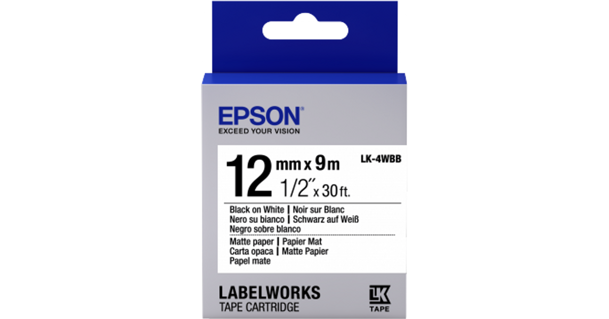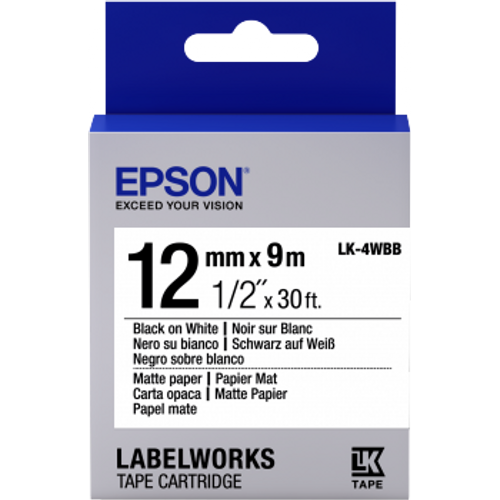 Epson Label Cartridge Matte Paper LK-4WBB Black/White 12mm (9m), Black on white, Paper, Japan, Matt, LabelWorks LW-1000P LabelWorks LW-300 LabelWorks LW-400 LabelWorks LW-400VP LabelWorks LW-600P..., 1.2 cm