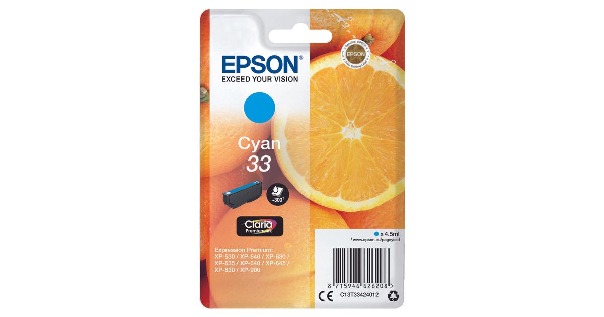 Epson Oranges Singlepack Cyan 33 Claria Premium Ink