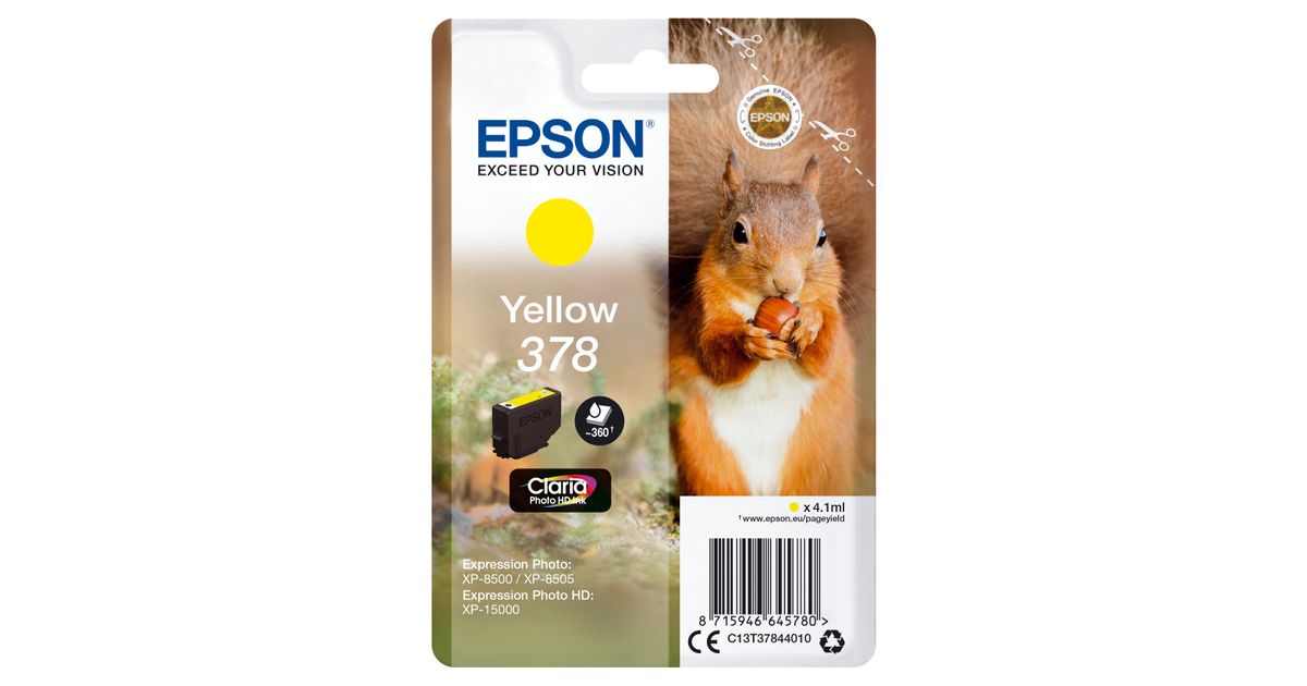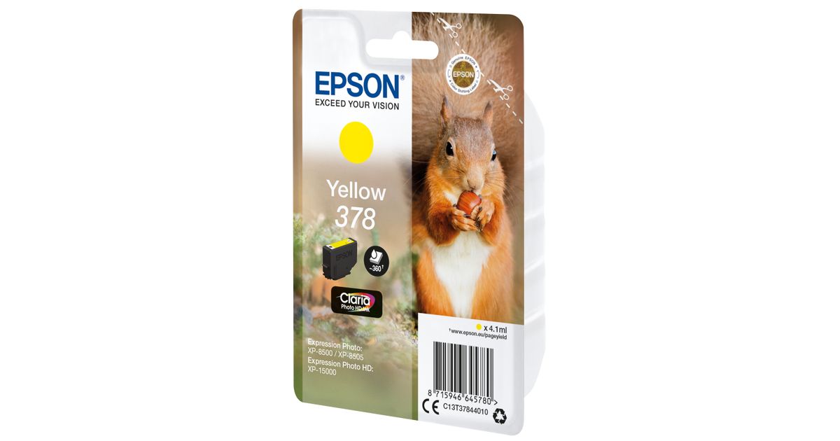 Epson Squirrel Singlepack Yellow 378 Claria Photo HD Ink, Standard Yield, Pigment-based ink, 4.1 ml, 360 pages, 1 pc(s)