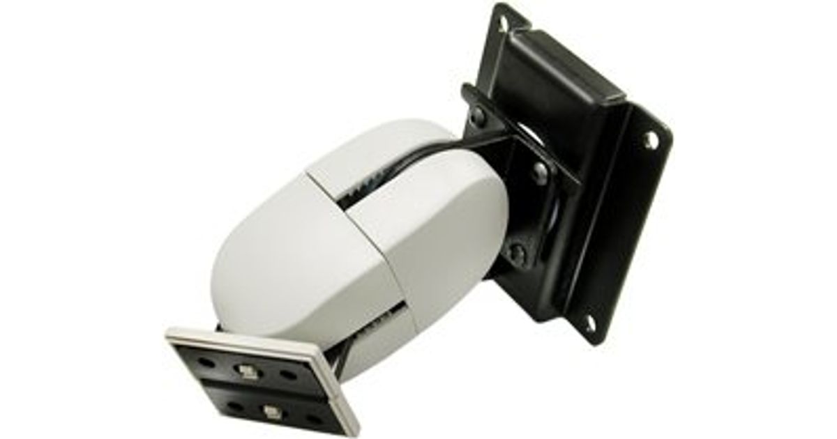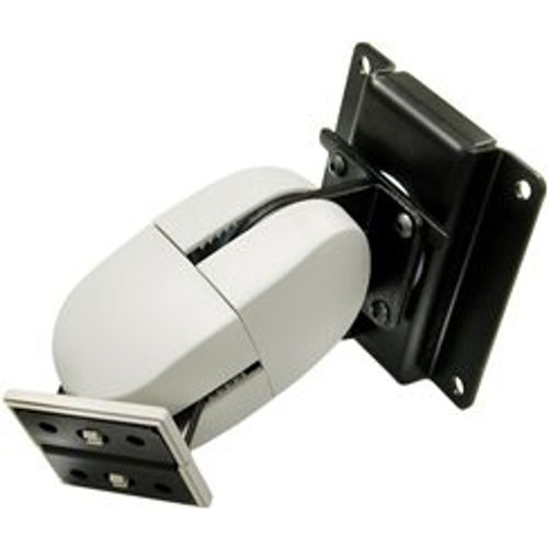 This pivot allows an LCD to be mounted with a minimum profile while providing up/down tilt and right/left pan. It even rotates for portrait/landscape viewing.