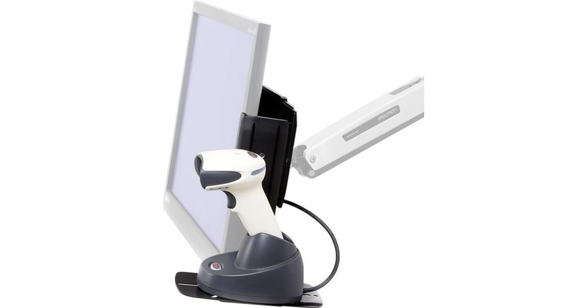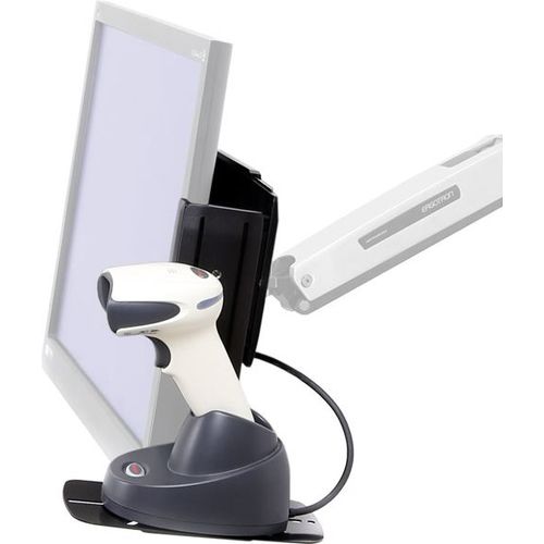This kit places a wireless scanner conveniently alongside your monitor screen. The bracket easily attaches to a mount’s VESA hole pattern, while the shelf includes a universal interface for attaching a scanner base.