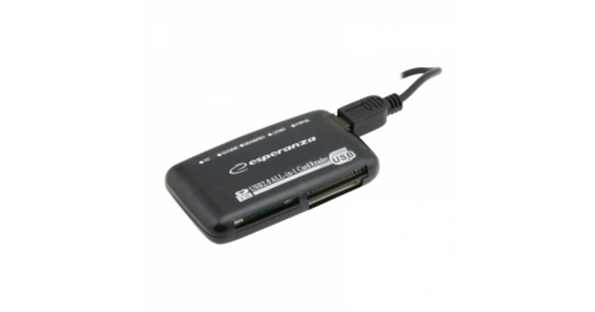 Esperanza EA117, MiniSD, MMC, RS-MMC, SD, SDHC, SDXC, Black, 480 Mbit/s, USB 2.0, Windows 2000, Windows 8, Windows 8 Enterprise, Windows 8 Enterprise x64, Windows 8 Pro, Windows 8...