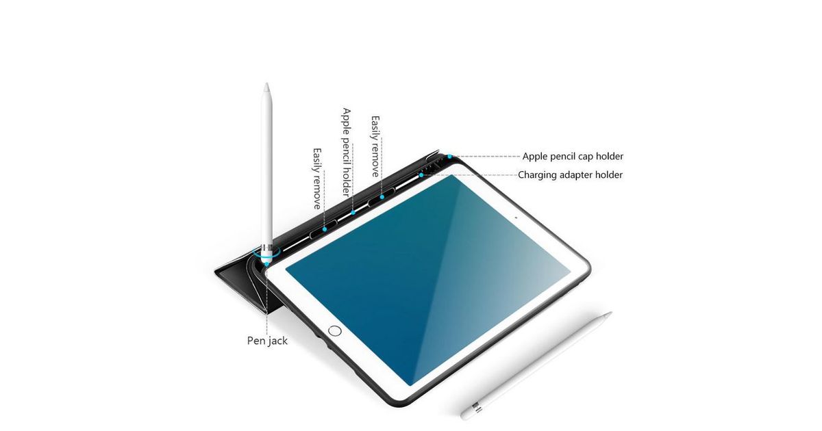 The pencil case is ultra slim and consists of a soft TPU back cover and a magnetic front cover. It is crafted to give full protection of the tablet and the pencil.