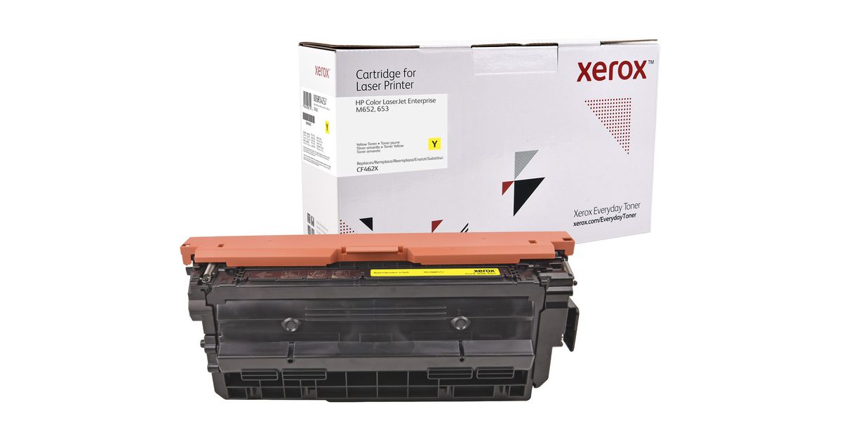 Everyday Yellow Toner compatible with HP 656X (CF462X), High Yield, by Xerox. Comes with a lifetime warranty and is designed for optimum quality, performance, reliability, and safety. Offered at a significantly lower cost compared to cartridges from original manufactures, the Everyday™ Toner portfolio includes cartridges for major printer and copier brands. They meet or exceed industry standards for global safety and environmental compliance and may be returned to Xerox free of charge for recycling in an environmentally responsible way.