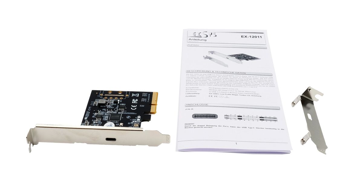 The EX-12011 USB 3.2 Gen2 with PCIe Slot (Gen3x4) card provides two external Super-Speed USB 3.2 Gen2 ports with 1x C socket. It is designed to connect two additional USB 1.1, 2.0 ,3.0 and 3.2 Gen2 devices to your workstation, desktop or server. It supports USB 1.1 Low-Speed (1.5Mbps), Full-Speed (12Mpbs), USB 2.0 High-Speed (480Mbps), USB 3.0 Super-Speed (5Gbps), USB 3.2 Gen2 Super-Speed (10Gbps) und USB 3.2 Gen2x2 Super-Speed (20Gbps). It is the perfect technology for External Storage Enclosures, Digital Cameras, Webcam, Scanner and more. The EX-12011 supports 2.4A current on the External USB 3.2 Gen2 ports. A low profile bracket is included with the EX-12011 for use with slim enclosures up to a maximum height of 8cm.