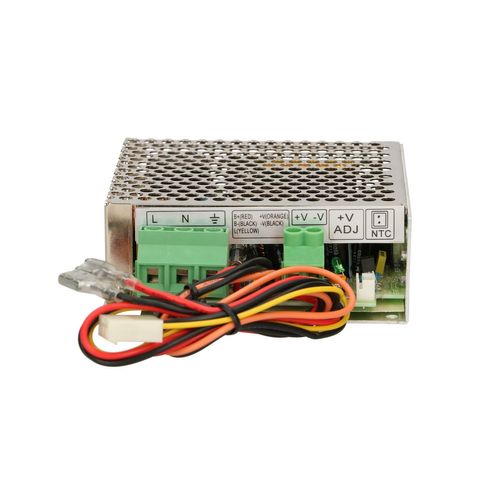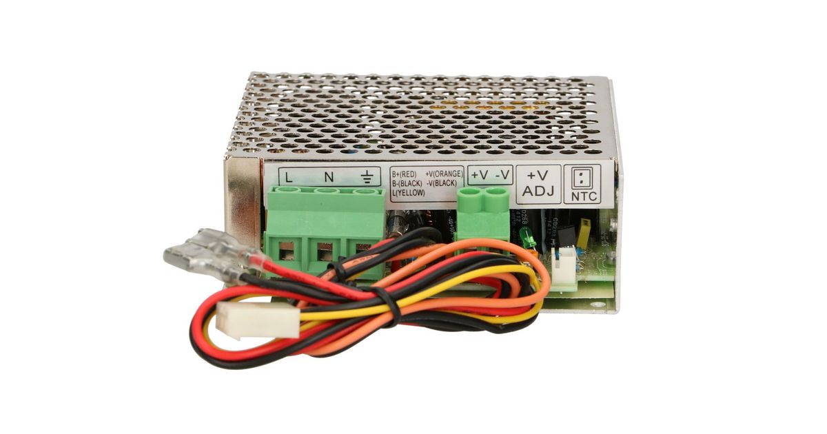The perforated metal casing facilitates the airflow, which results in more efficient cooling of the device. The screw terminals are marked accordingly and are used to connect the cable entries in accordance with electrical principles. The installer can adjust the output voltage within a certain range using a potentiometer.