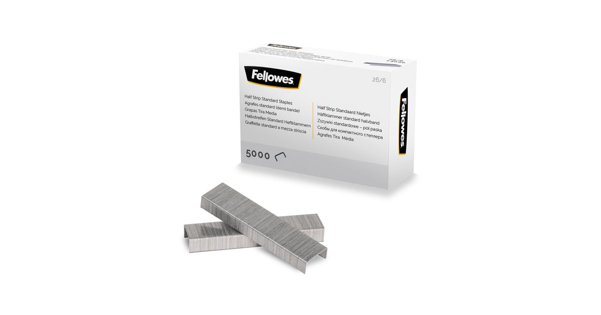 Fellowes 5117601, Staples pack, 26/6, Fixing, 5000 staples, Silver, Paper