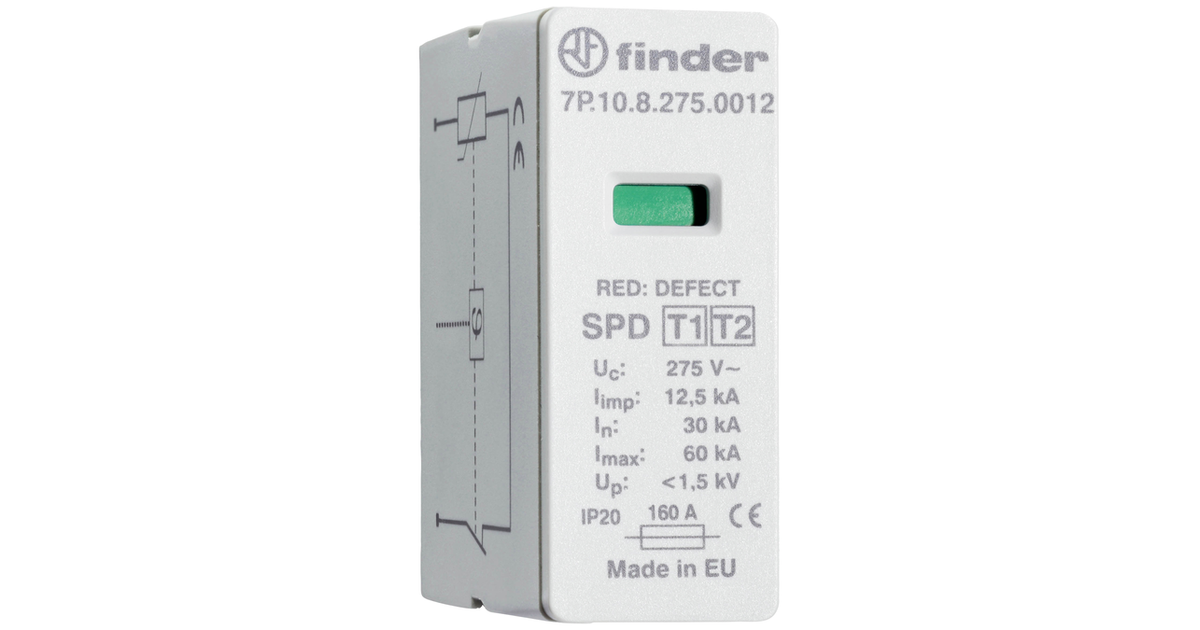 Finder 7P.10.8.275.0012 Surge Arrester (Plug-In) Surge Protection For: Switchboards 20 Ka 1 Pc(S)
