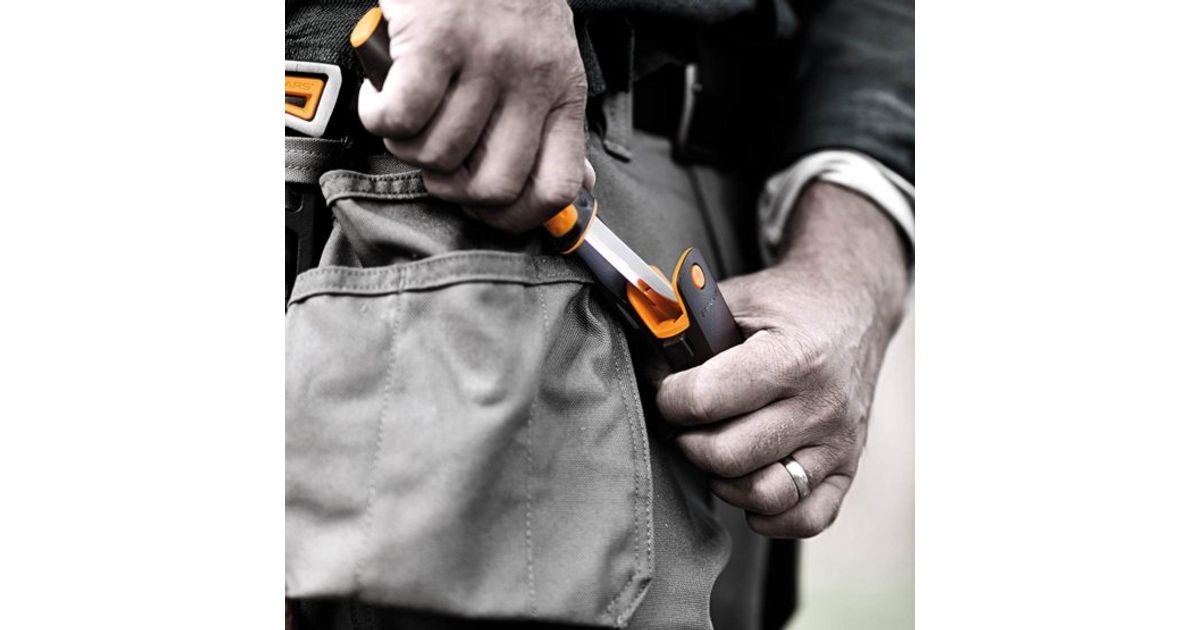 Fiskars Universal knife with sharpener is a utility knife with a high-quality steel quality blade for general use. It is part of a new range of utility knives with an integrated sharpener that has been developed jointly with the most demanding knife users. The innovative easy-to-use sharpener is always with you guaranteeing sharper cuts without any interruptions to the task.