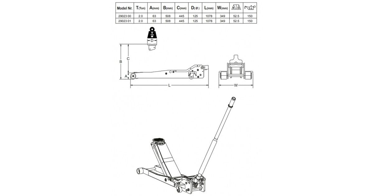 Eriti madala 63 mm lähtekõrgusega garaazitungraud. Tungraua raam on lisaks eriti madalale kõrgusele 1078 mm pikkune. Võimaldab tõsta autosid sügavalt põhja alt. õõtshoobadest. tagasilla reduktorist jne. PU kattega müravaba veeremisega rattad. Kergelt manööverdatav. Kummikattega tõstehoob. vältimaks autovärvi kahjustusi. Kiirtõstemehhanism s.t 1-3 tõstehoova liigutusega tõuseb tõstekäpp vastu autot. Tungraud kaetud korraliku. 3-kihilise värvkattega. mis peab vastu meie kliimaoludes ning on teesoola kindel. NB! Enne kasutuselevõttu tutvu kaasas oleva piltjuhendiga!