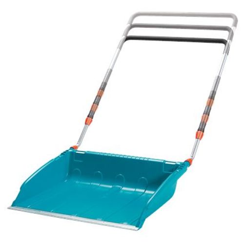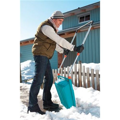 Especially in severe winters with larger areas to be cleared, the GARDENA Snow Scoop is a fast helper. With a convenient working width of 70 cm, lots of snow can be cleared at once. The handle is telescopic in three stages (approx. 30 cm) and adjustable to body height. The grip area is coated with cold-insulating material that is kind on the hands. Thanks to additional grips at approx. half the height of the handle, the collected snow can be conveniently removed. A defined tread on the rear edge of the Snow Scoop and an additional aluminium handle provide stability and allow the use of your foot when the Snow Scoop is to break even more easily into larger snow quantities. The edge is made from robust and longlife, galvanised steel. And the best part: The Snow Scoop can be tidily stored in a jiffy when no longer needed. With just a few hand movements and without tools, the handle is removed and can be clicked under the scoop. With 25 year warranty.